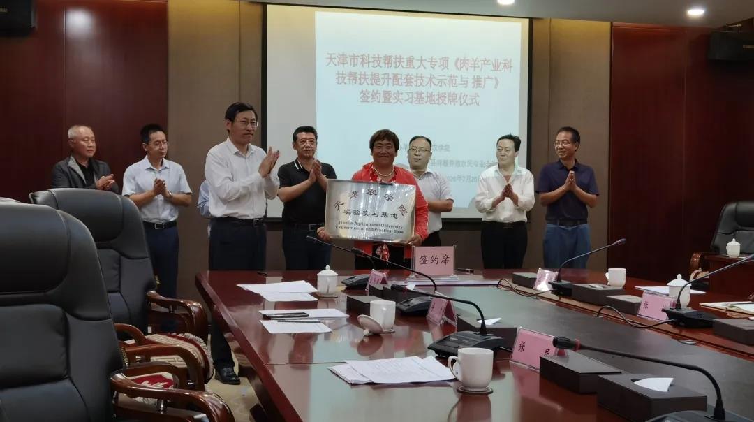 出席天津市科技帮扶重大专项《肉羊产业科技帮扶提升配套技术示范与推广》签约及实习基地授牌仪式。