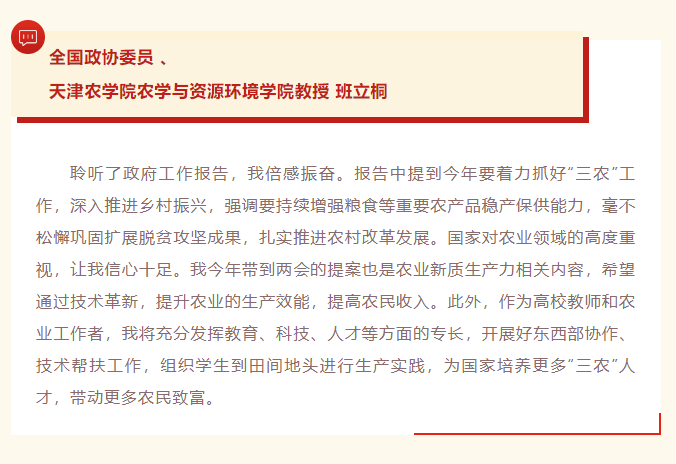 2025年3月5日,津门教育公众号报道贝博党委书记李鑫和全国政协委员、农学与资源环境学院班立桐教授结合自身工作和学习实际,热议全国两会。