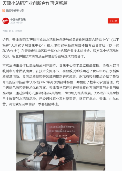 中国教育在线双平台报道贝博天津小站稻产业创新合作再谱新篇