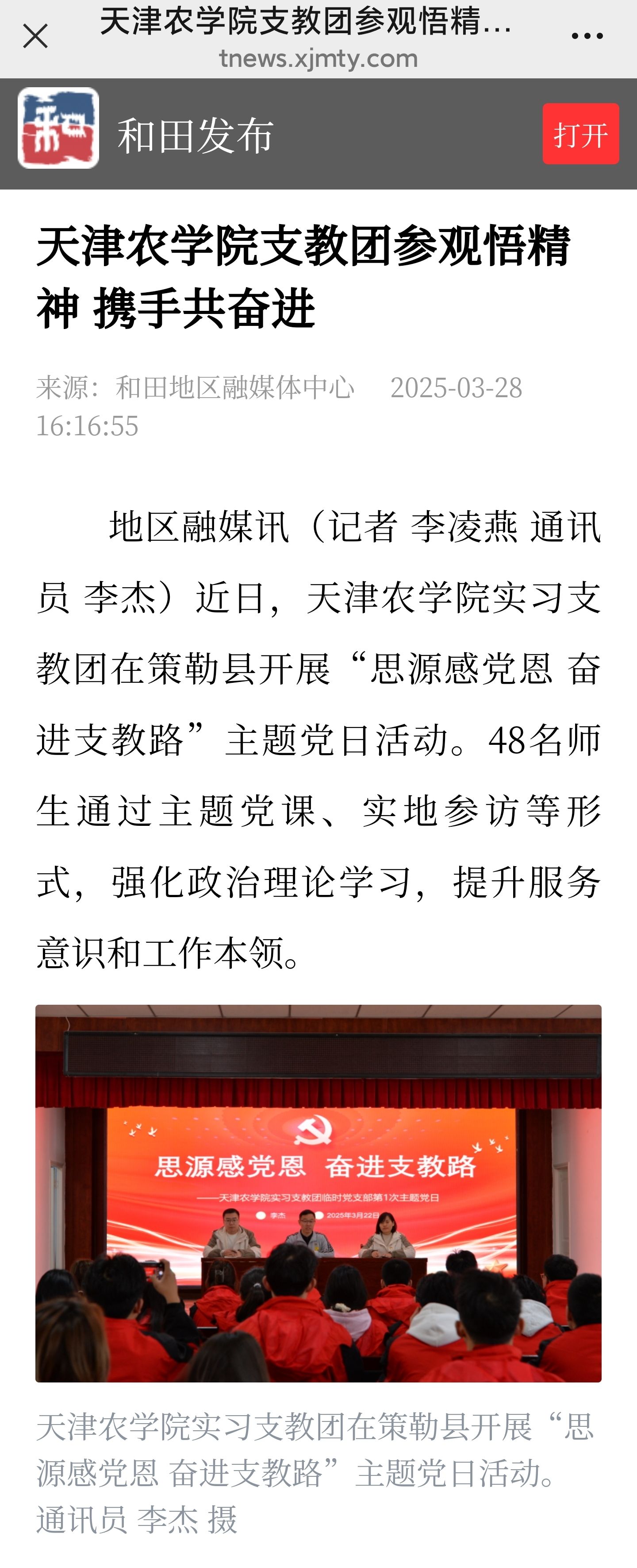 2025年3月28日,和田发布客户端报道贝博实习支教团在策勒县开展“思源感党恩 奋进支教路”主题党日活动。48名师生通过主题党课、实地参访等形式,强化政治理论学习,提升服务意识和工作本领。