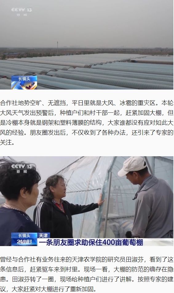 央视新闻等多家主流媒体报道贝博田淑芬研究员指导种植户应对大风天气