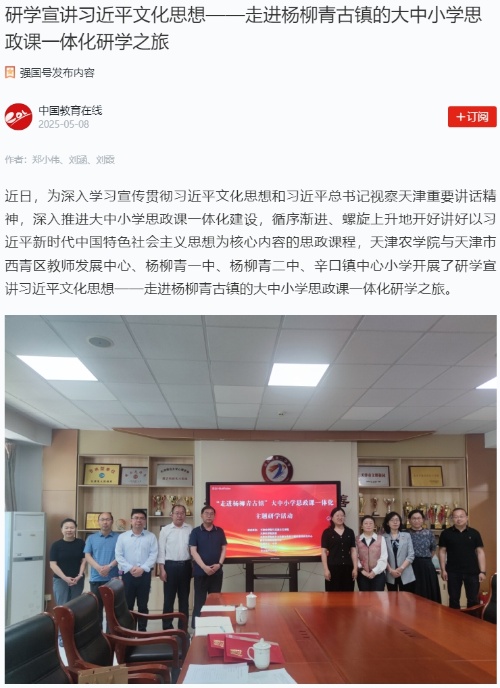 2025年5月8日,学习强国平台-中国教育在线、中国教育在线网、津门网络大思政公众号报道,贝博与天津市西青区教师发展中心、杨柳青一中、杨柳青二中、辛口镇中心小学开展了研学宣讲习近平文化思想——走进杨柳青古镇的大中小学思政课一体化研学之旅。