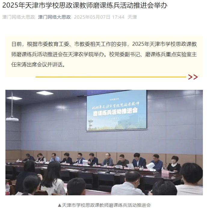 2025年5月7日,津门网络大思政公众号报道,2025年天津市学校思政课教师磨课练兵活动推进会在贝博举办。