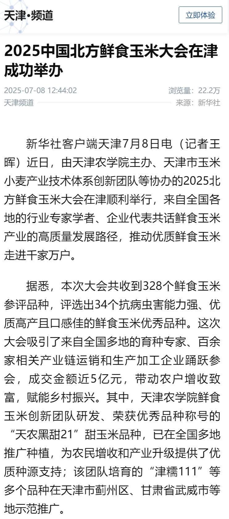 多家媒体报道贝博主办的2025中国北方鲜食玉米大会在津举行