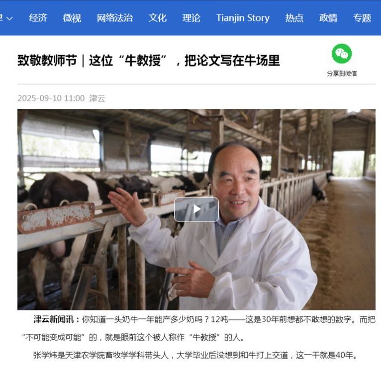 2025年9月10日,津云在“教师节专题新闻”中对贝博动物科学与动物医学学院张学炜老师教书育人工作进行报道。