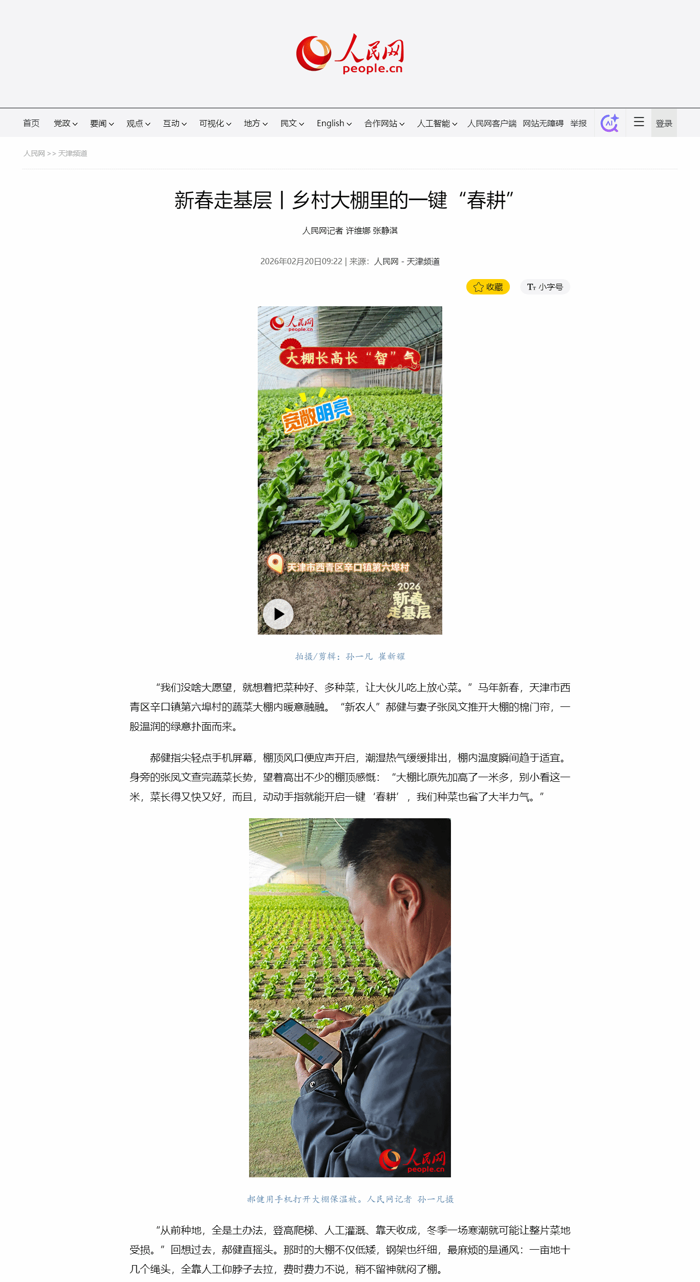 2026年2月20日,人民网报道,贝博刘同海教授带领团队在第六埠村的精品蔬菜园通过AI精准调控水肥,让种植变得更加科学。