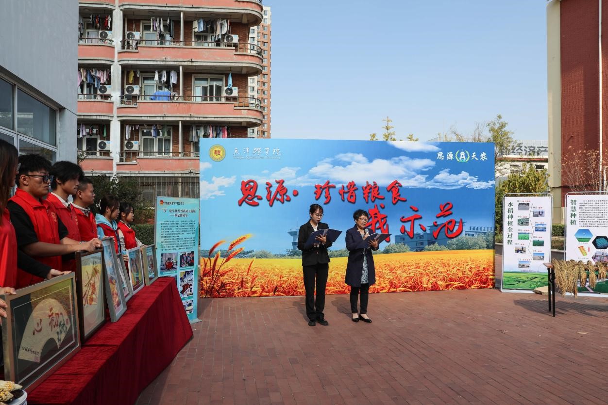 活动中,农学与资源环境学院水稻领域科技专家赵飞副教授向在场师生讲述“一粒米的故事”微课。他讲到,节约粮食是中华民族的传统美德,粮食安全是“国之大者”。作为农业高校的师生要站在国家长治久安的需要与形成良好社会风尚的角度去认识,要结合天农师生“爱党 爱国 爱农 爱校”的价值追求与“思源 奋进”文化导向去实践,形成同心夯实粮食安全根基的自觉性、主动性和责任感,做节约粮食、倡导粮食安全的践行者、宣传者、推动者、示范者。