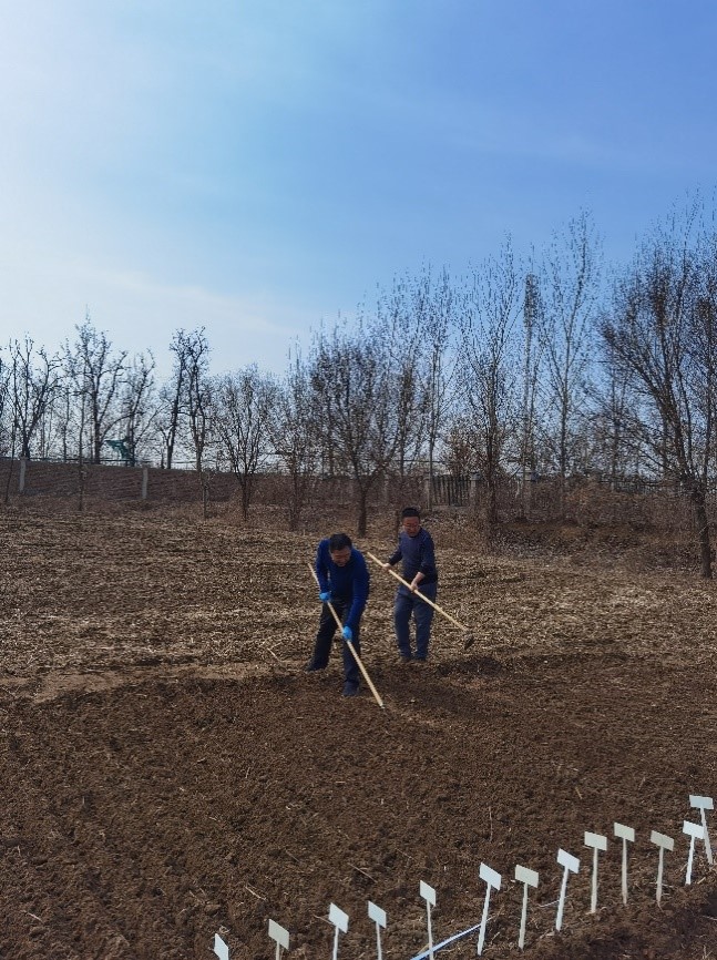 在校区试验基地,谢晓东研究员团队对引自国际小麦玉米改良中心和阿根廷国立农业科学院的一百余份耐逆春小麦高代品系,开展春播试验,中选综合农艺性状优良的优良小麦品系将用于华北片区春小麦的新品种选育中。研究团队还重点关注具有抗病、耐盐碱、耐旱等性状的优良品系,期望挖掘重要性状调控基因,解析其生物学功能,为耐逆生物育种储备基因资源。