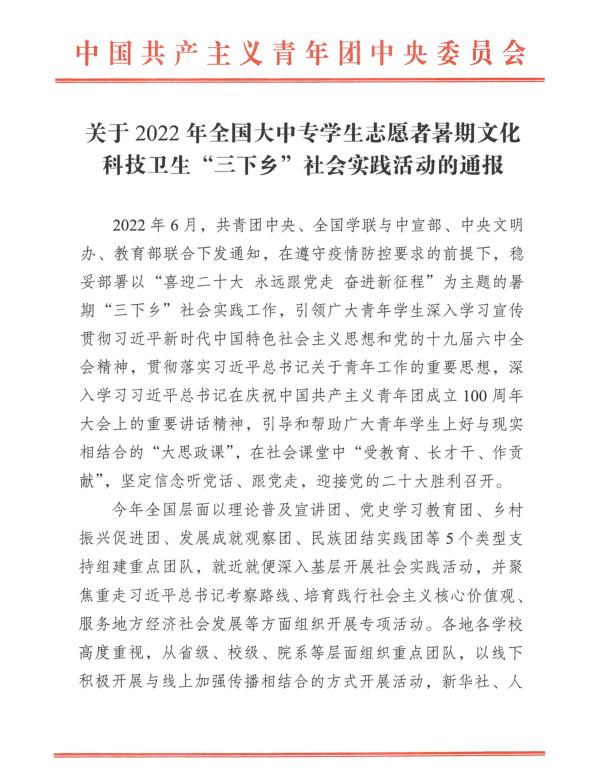 近日,团中央对2022年“三下乡”社会实践活动中表现突出的优秀集体、个人和项目进行通报表扬。经校级评审、省级团委审核推荐、组织评议等环节,贝博“助力乡村振兴 绽放青春光彩”园艺园林学院思源社会实践团荣获全国“三下乡”社会实践优秀团队。