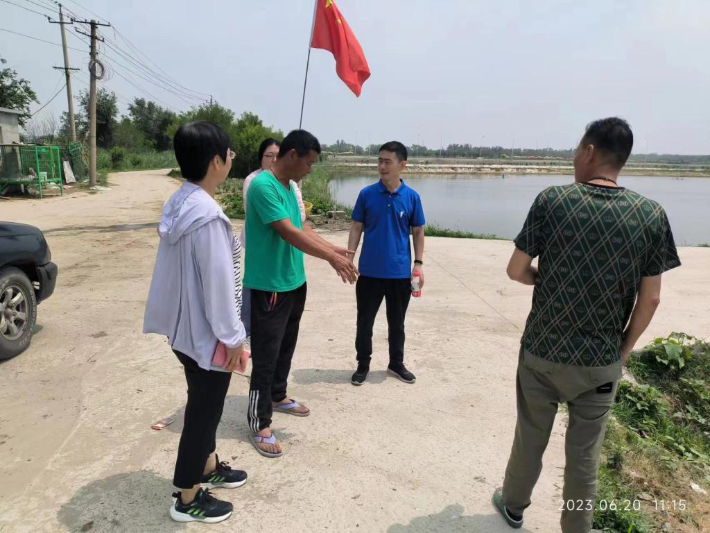 王庆奎教授和张丹博士分别从弧菌病和白便病的致病条件、发病机理、防治措施及池塘水质与底质的调控等方面进行重点讲解。在现场培训过程中,王庆奎和张丹与养殖户积极互动,对饵料投放、藻类及有益菌培养等养殖环节给予了科学合理的建议,受到养殖户的一致好评。培训结束后,应养殖户要求,王庆奎和张丹前往芦新河村一处鱼池,帮助养殖户解决养殖技术难题。